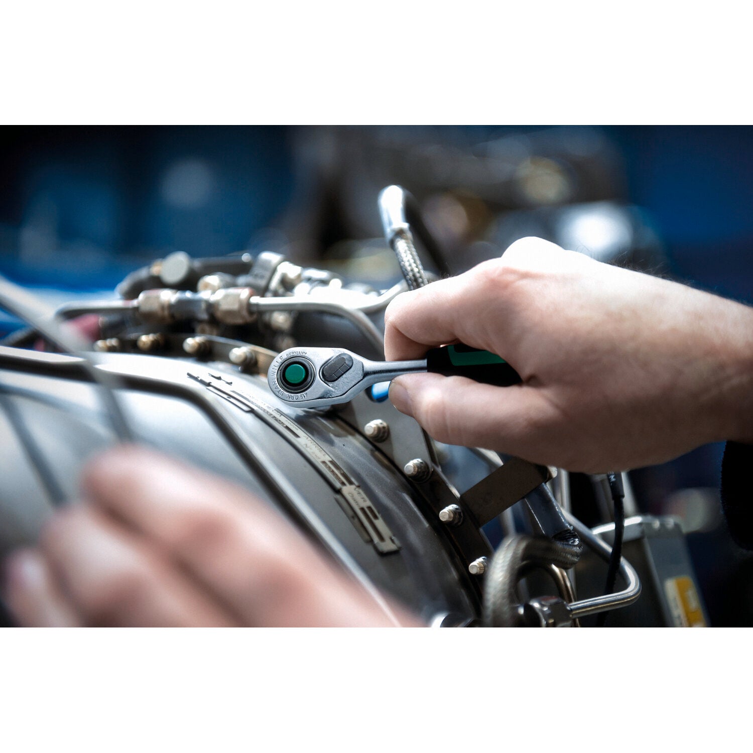 - Made in Germany - reversible STAHLWILLE ratchet with 2-component handle, 80 teeth, QR push button release, length 117 mm, DIN 3122/ISO 3315, Chrome Alloy Steel, chrome-plated, 11111020.