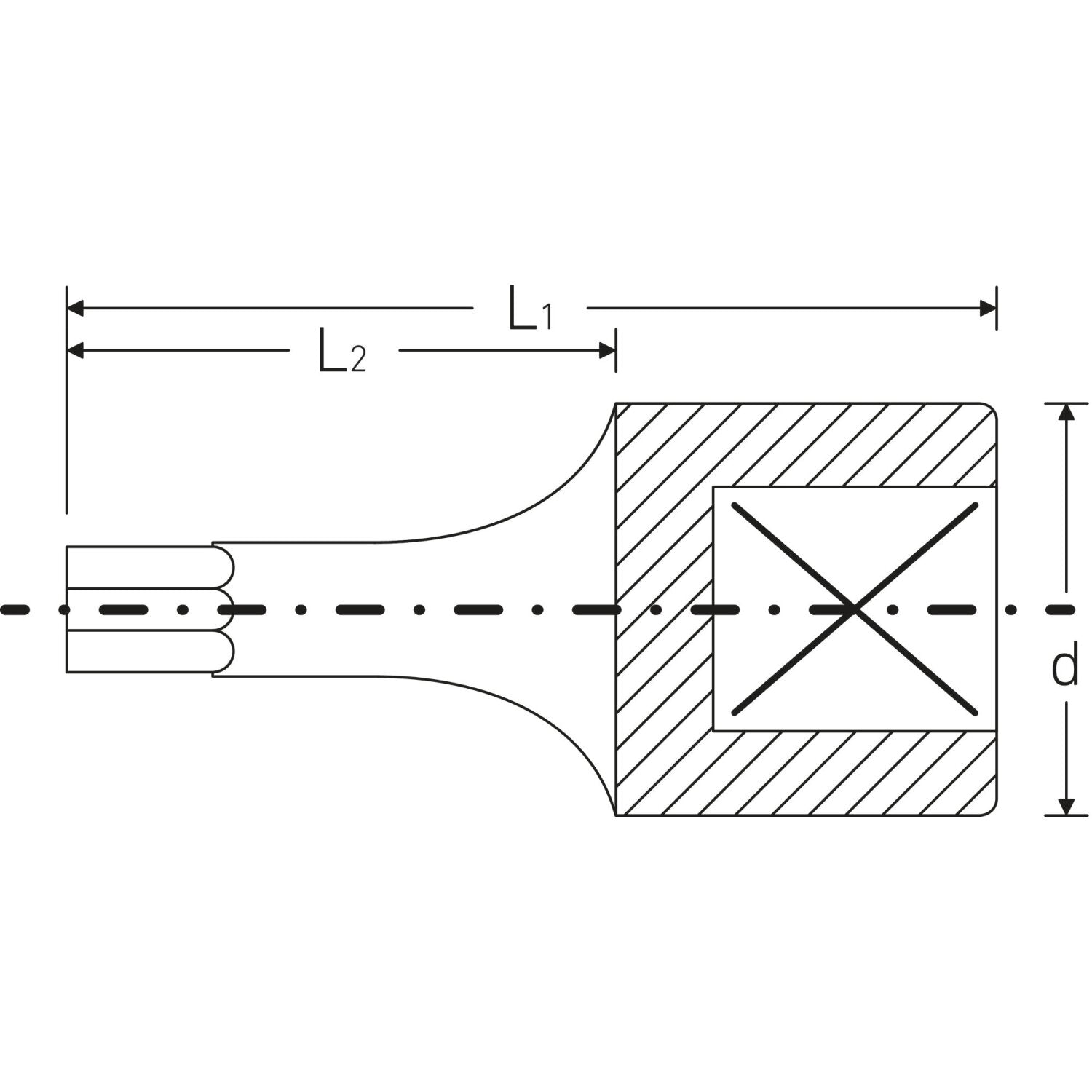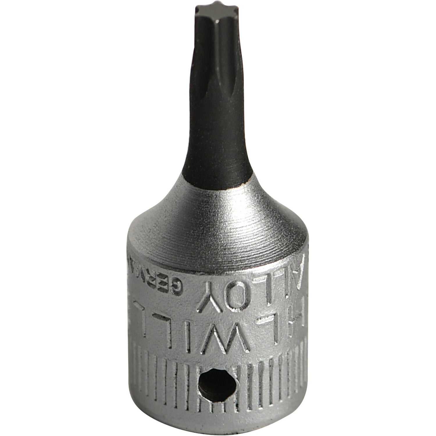 This socket is designed for recessed TORX® screws and features a 1/4" internal square drive. It is manufactured from chrome alloy steel and chrome-plated.
