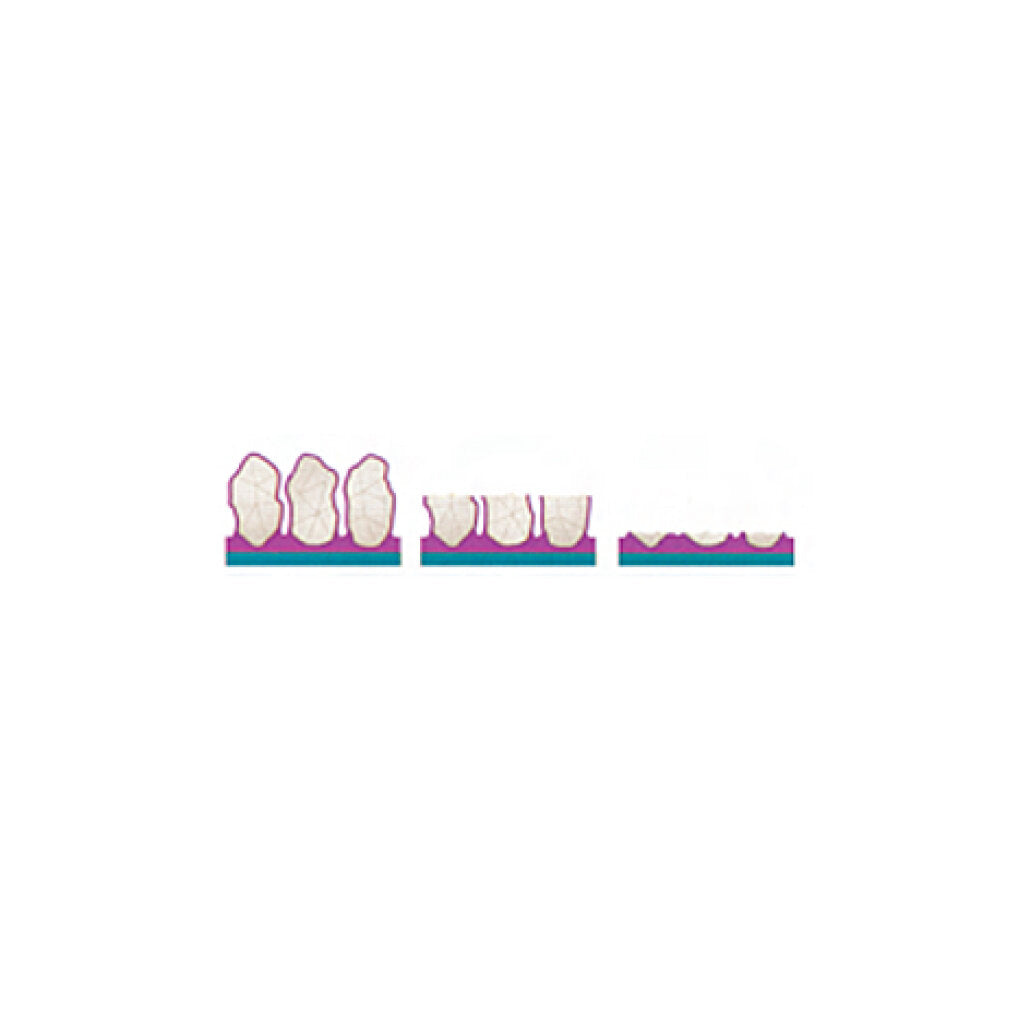 The belt uses a Film Media Splice, a strong secure bond joining the belt ends, consisting of a thin film-joining media that minimizes "chatter marks," ensures a smooth running belt, and consistent finishing results. When compared to conventional abrasive products, proprietary Trizact™ abrasives produce a finer finish, achieve results faster, and last longer.