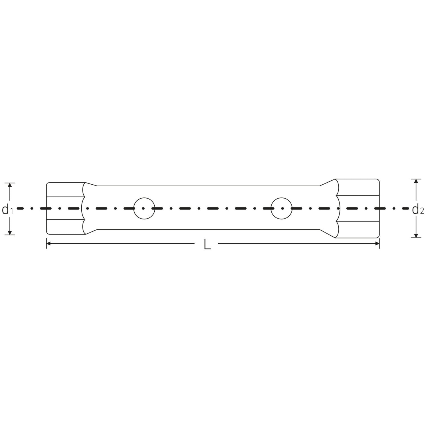 - The extended shape of the pipe double socket wrench serves as a practical handle and can therefore be used ideally even in narrow, space-limited work spaces.