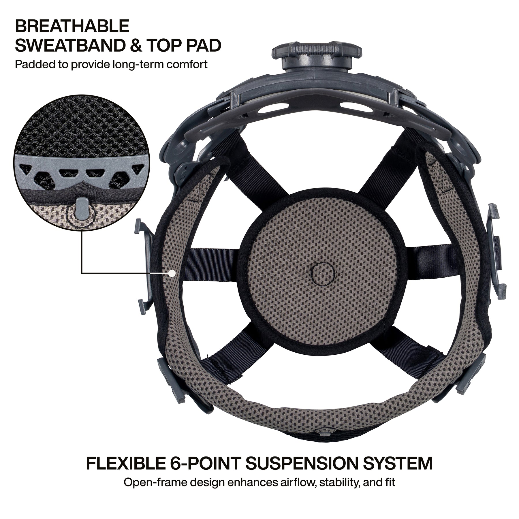 Klein Tools Cat. No. 60401T2 Type 2 Hard Hat delivers advanced protection and comfort for demanding jobsite conditions. Patented accessory mounts allow secure, strap-free accessory attachment, while the 6-Point suspension system ensures a stable, breathable fit. With washable padding, universal accessory slots, and a vented full brim shell for improved airflow, it's built for pros who need reliable, all-day performance in hot, high-risk environments.Hat Style: Full Brim