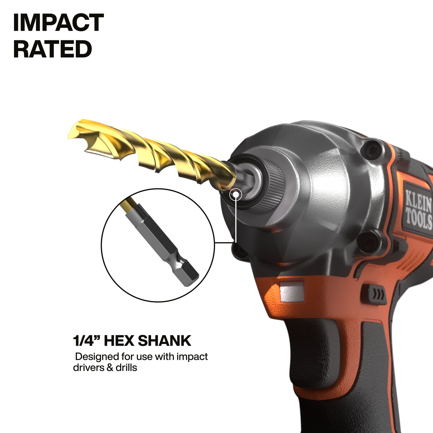 • Quick-change 1/4-Inch hex shank is impact rated for use with impact drivers and drills