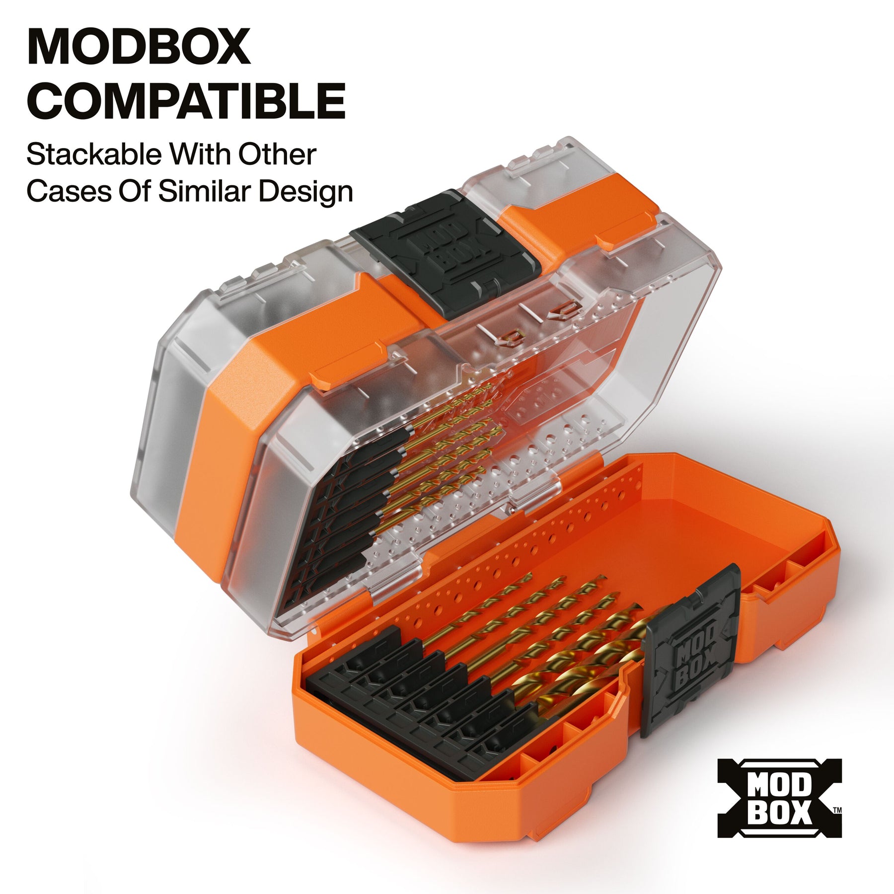 • Drill bit case is compatible with MODbox™ and stackable with other cases of similar design