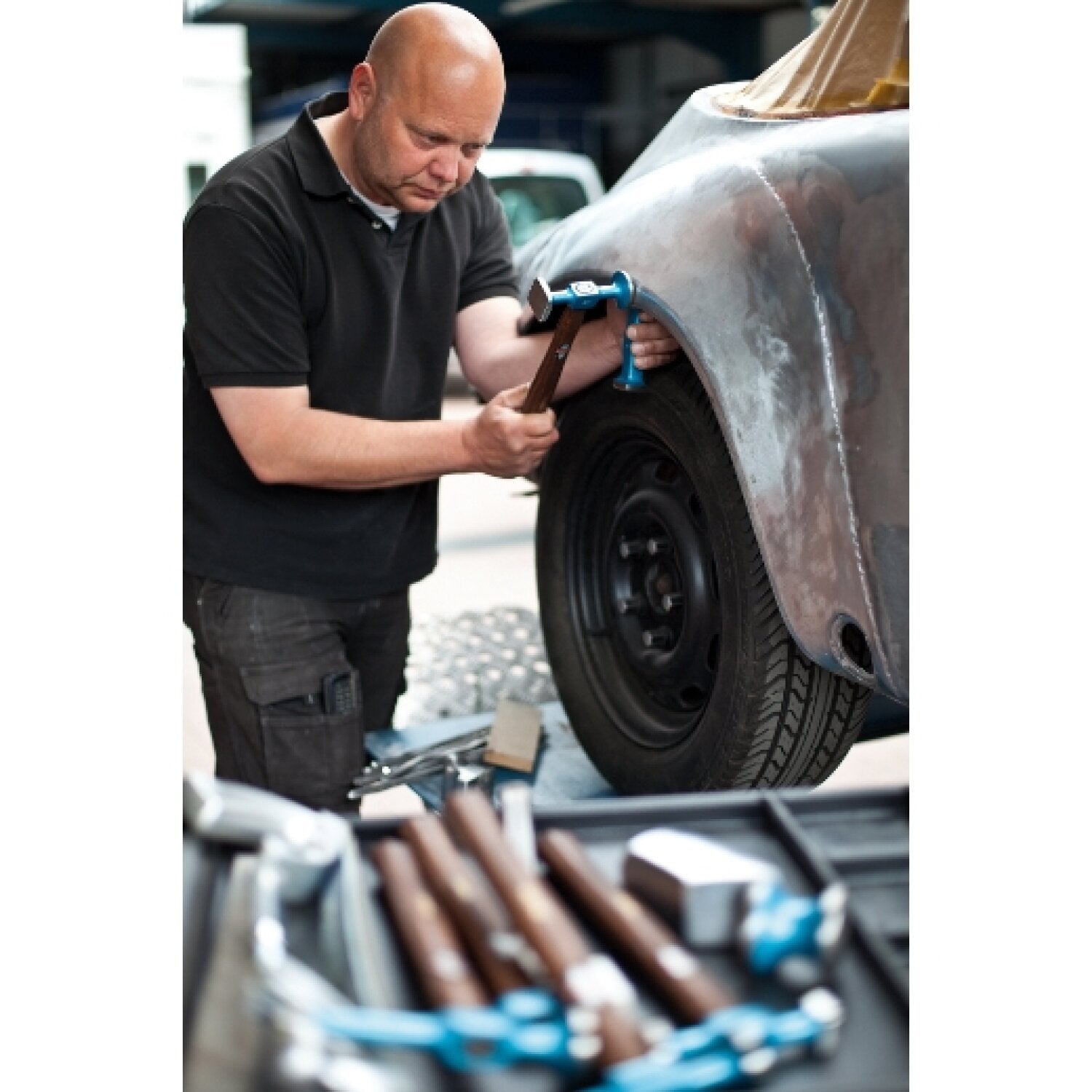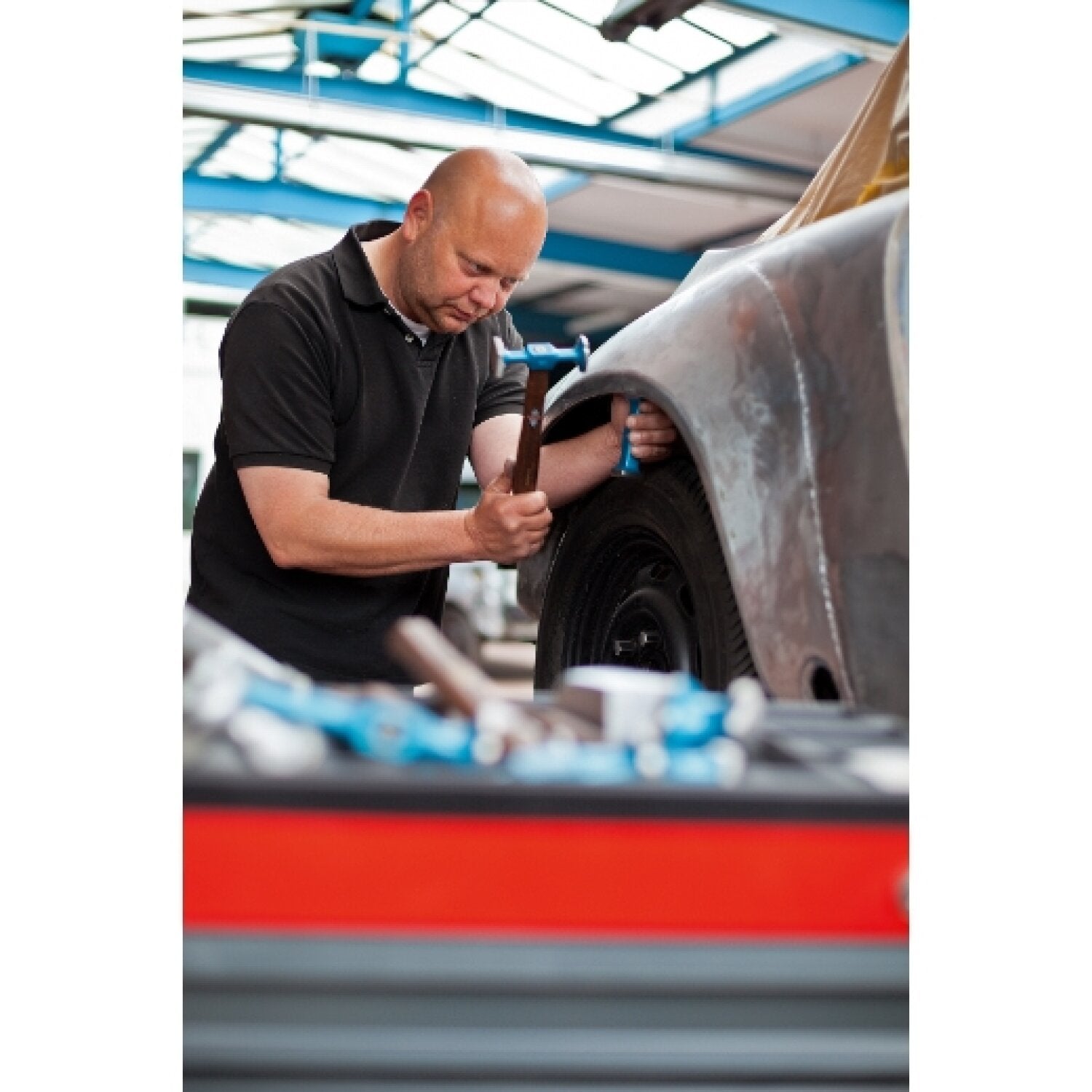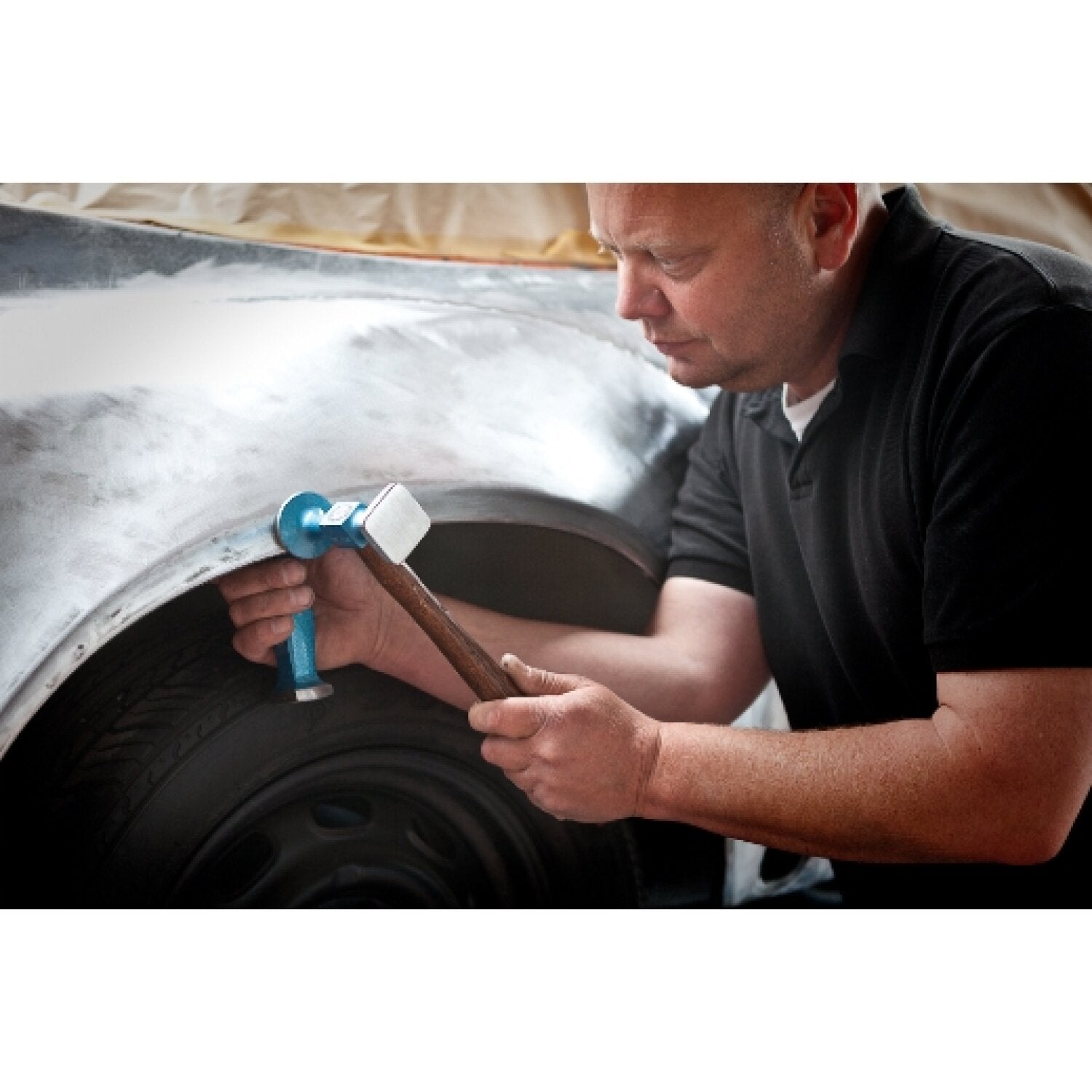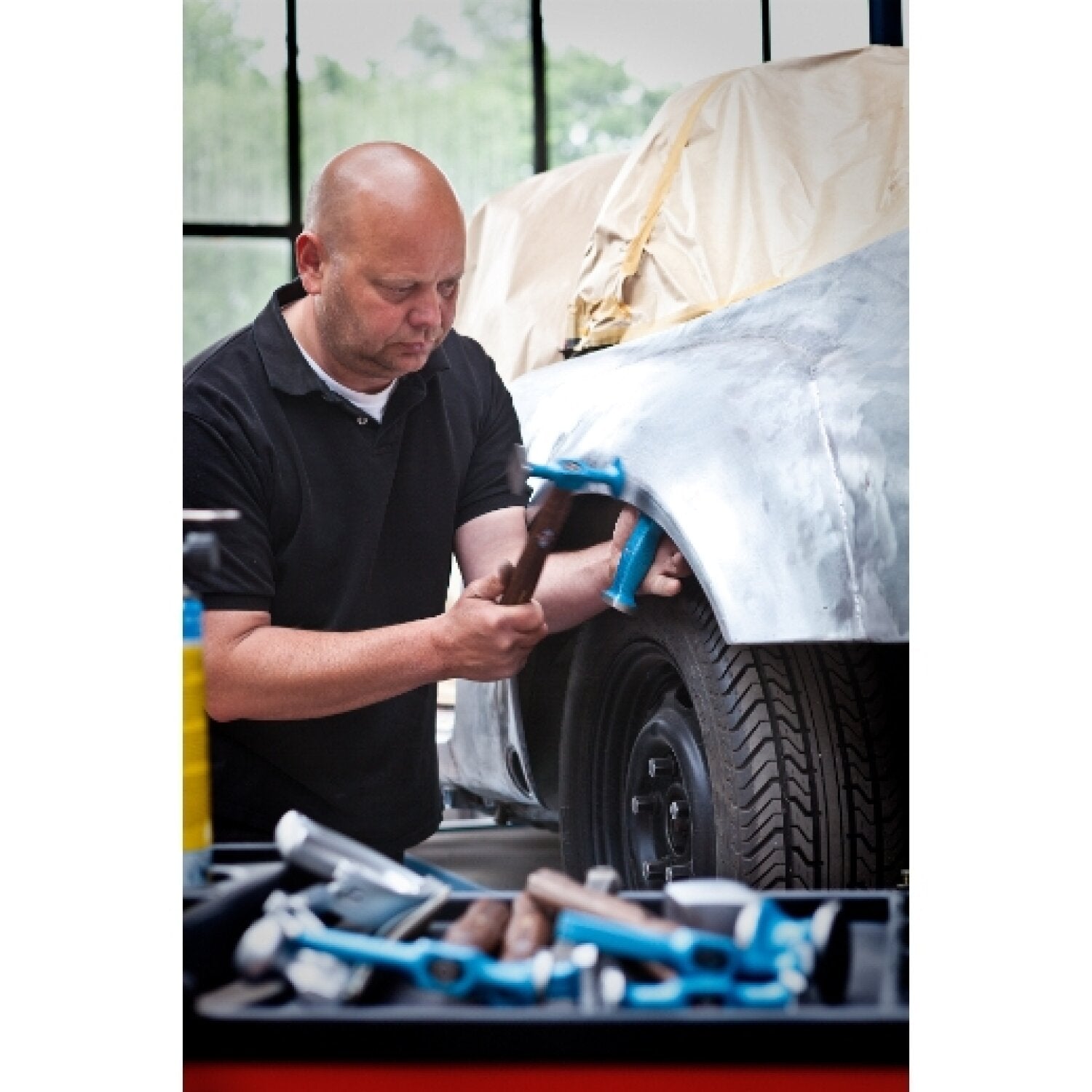 PICARD Dolly No. 251/3.Article 251/3 features a round, double-faced dolly with slightly arched working faces, finished in blue hammer-effect enamel.
