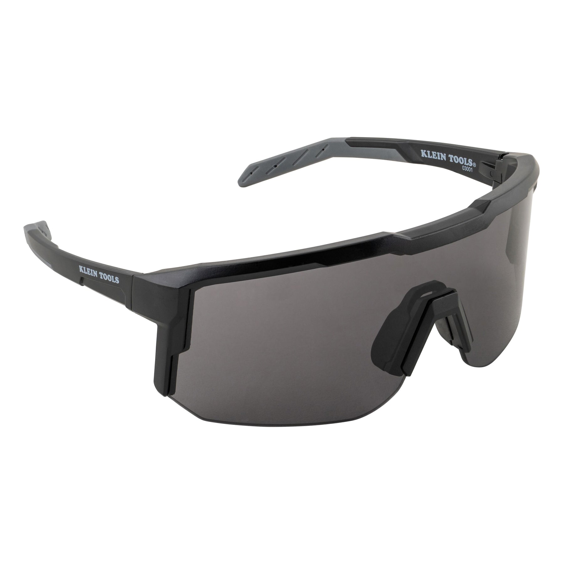 Klein Tools Shaded Blade Safety Glasses deliver premium protection with a wrap-around design and full coverage lens. Meets ANSI Z87.1+ standards for high-impact resistance while also blocking 99.9% of harmful UV rays. Anti-fog and scratch-resistant coatings ensure clear vision, while the rubberized nose and stems provide a secure, comfortable fit.Lens Color: Shaded / Gray