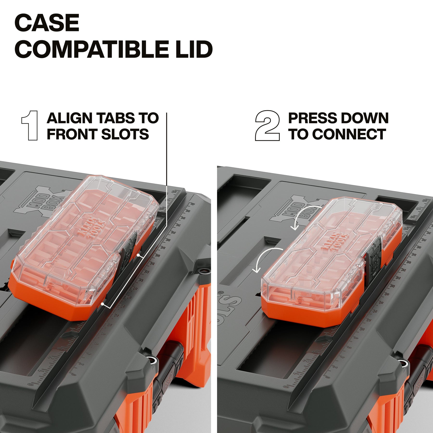 • Case-compatible lid includes V-groove and molded-in ruler for cutting and measuring