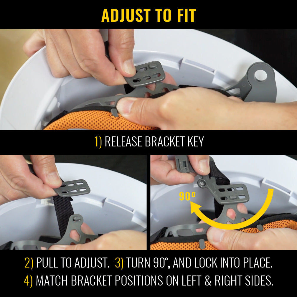 • Safety Hard Hat has patented accessory mounts on front and back that ensure Klein Tools Headlamps attach securely and precisely, every time; no straps or zip ties needed