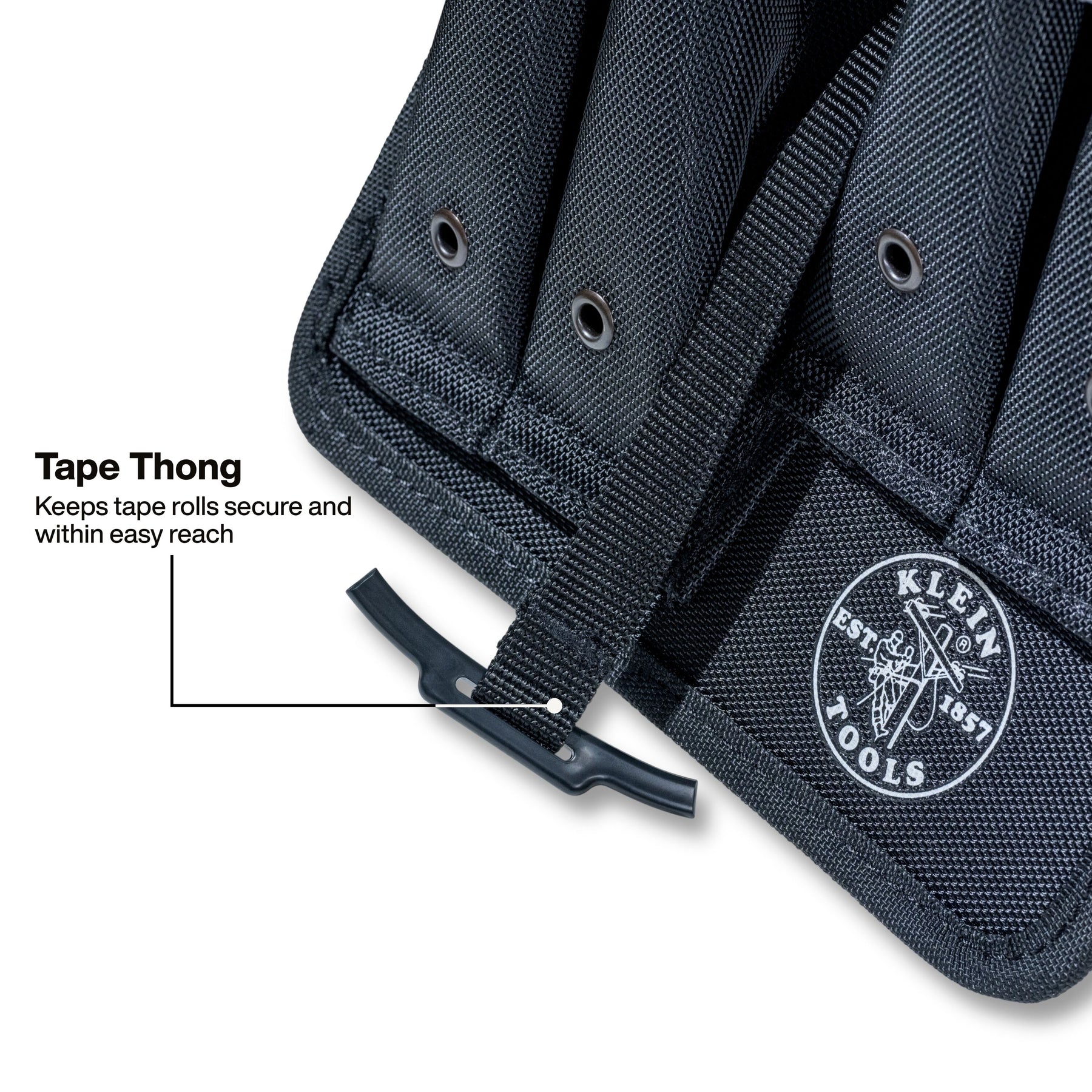 Klein Tools Mini Apron keeps essential tools close and organized in tight spaces. This lineman tool apron features two large and two small pockets for flexible storage, while the integrated tape thong ensures quick access to tape. Built compact, stackable, and BWC S-Hook compatible, it's made for efficient aerial work.