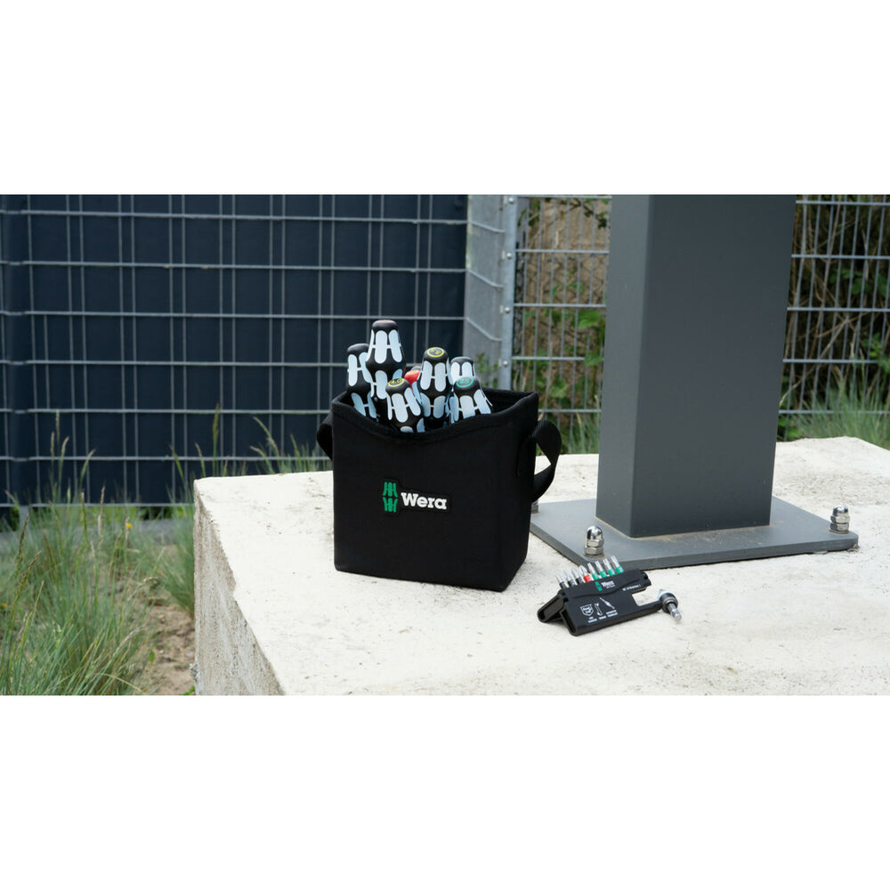 Bit-Check that can be positioned upright with high quality bits out of stainless steel. Wera stainless tools are manufactured out of stainless steel, thus preventing the formation of unsightly extraneous rust. 29 Wera stainless bits. 1 stainless Rapidaptor quick-release holder. The multi-component Bit-Check is convincing on account of its low weight and the maximum possible degree of compactness. In this respect, the soft material in the lower section of the Bit-Check ensures that the bits are securely held whilst being simple to remove at the same time. The profile and size of the bits are easy to recognise thanks to the Wera "Take it easy" Tool Finder with its colour coding and clearly visible imprint.