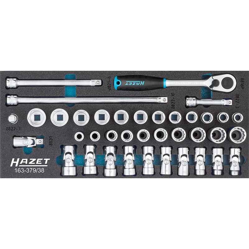 This series of socket sets by Hazet comes in a wide variety of configurations and assortments as well as in different work styles from traditional ratchet and sockets to T-handle sockets. Each set comes with a foam tray as part of the Safety Insert System which helps you store, organize and keep track of your tools and select models also feature a unique storage case.