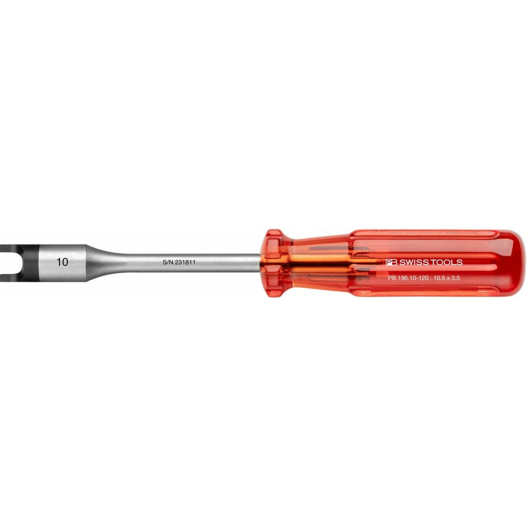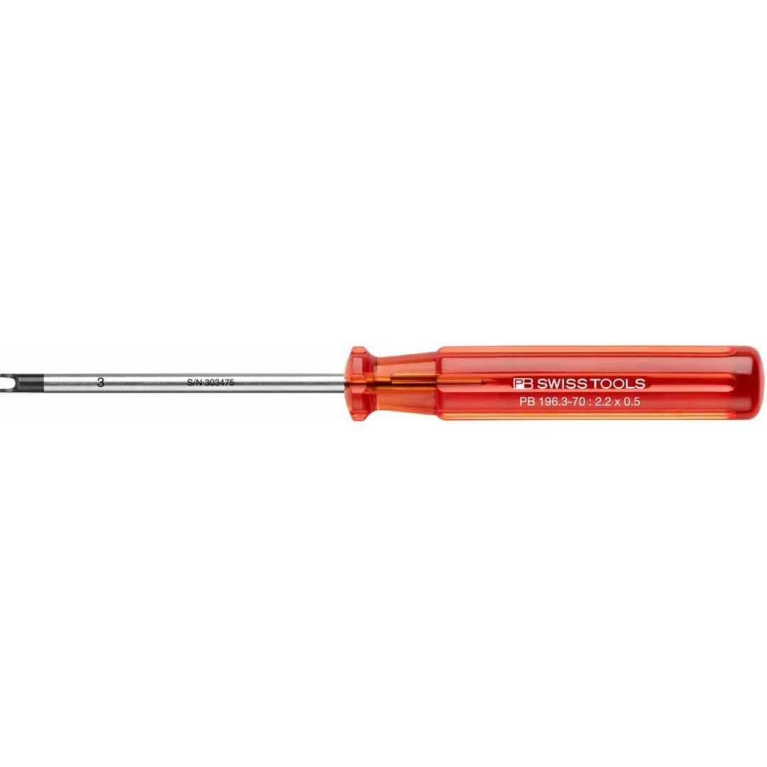 The PB Swiss Tools screwdrivers with classic handle: tried and tested millions of times over decades, used everywhere in industry and assembly, for repairs, in handiwork and in the home and leisure sector. The round basic shape is ideal for quick turning and universal work. The slender handle saves space in tool bags and suitcases. The pleasantly non slip surface and the ergonomic grooves allow a high torque. The high quality transparent CAB (Cellulose Acetate Butyrate) material is extremely impact proof, resistant to oil and gasoline and recyclable. Since the modified natural material can develop an unpleasant smell in airtight boxes and drawers, we mix in a subtle vanilla aroma for its neutralization.