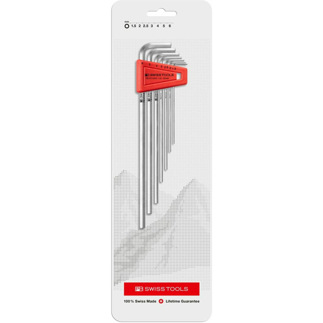 Hex key L-wrenches for hexagon socket screws (mm) The PB Swiss Tools hex key L-wrenches for hexagon socket screws (mm) are being used all over the world in mechanical, metal and vehicle construction. Professional users choose tools from the wide range of 0.71 to 22 mm. For every L-wrench, tolerances are guaranteed that are smaller than a hair. This perfect dimensional accuracy and the hard and tough special alloying make for precise, durable tools. L-wrenches for hexagon socket screws are available in a chromed version and powder-coated with colorcoding. The variety of long and short hex key L-wrenches with and without ball point leave nothing to be desired.