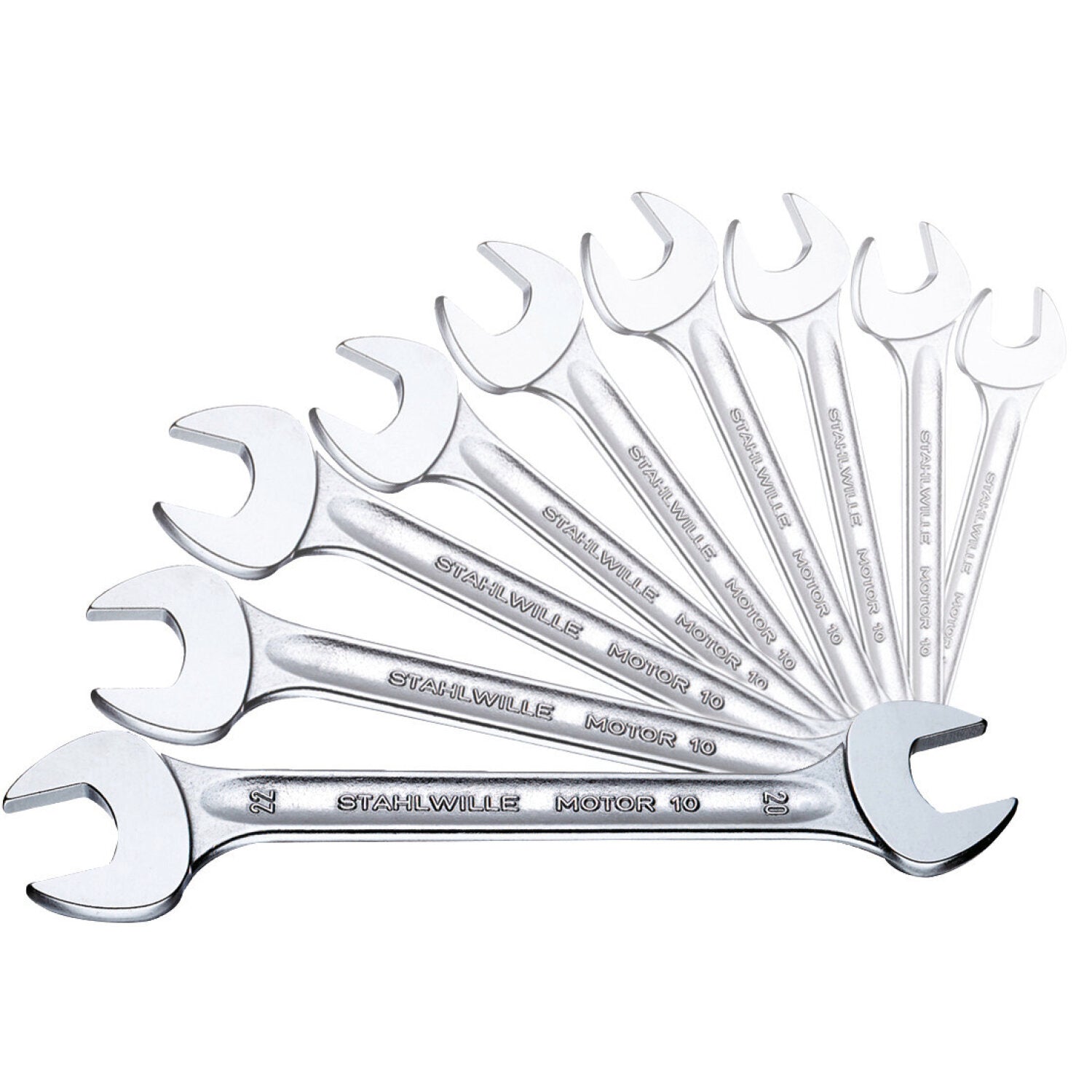 - Made in Germany – STAHLWILLE double open-ended wrench set in sturdy roll-up bag, 9 , , jaw 15° angle, DIN 3113 Form A, chrome alloy steel, chrome-plated, 96400314.
