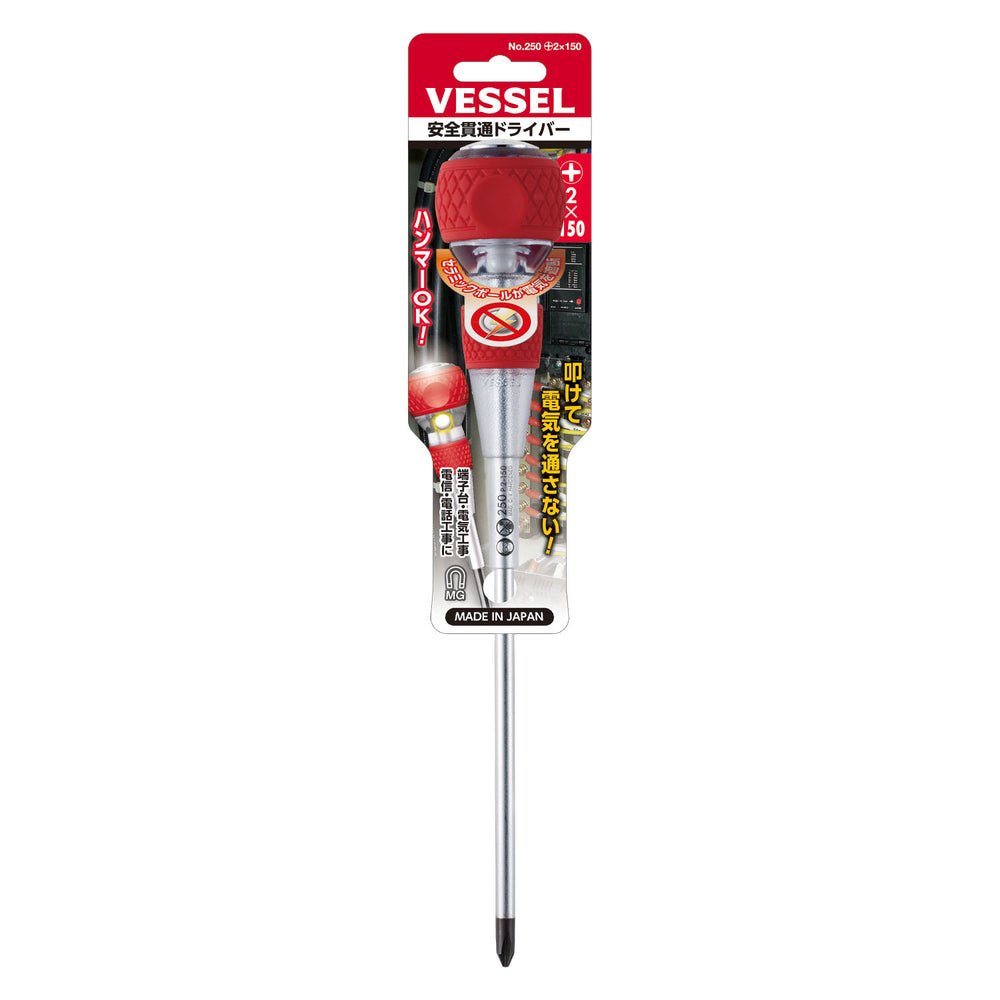 Vessel Tools 250S6150 Tang-Thru Screwdriver w/Ceramic Ball No.250, Slotted 6 x 150