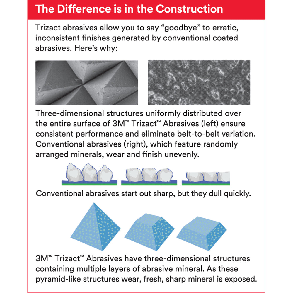 - Microreplicated pyramids wear away to continually expose fresh mineral for a consistent cut throughout the life of the belt