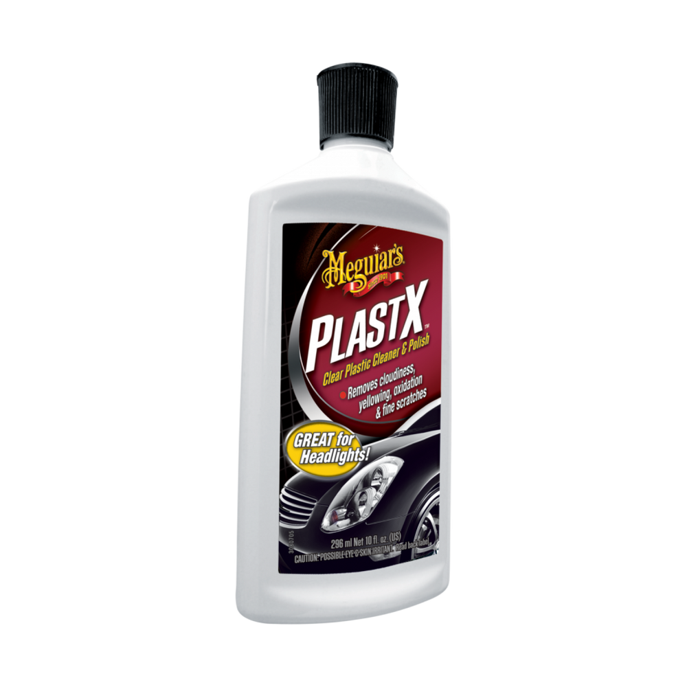 Meguiar's® PlastX Clear Plastic Cleaner and Polish gently removes light oxidation, chemical degradation, surface contamination, stains and light surface scratches quickly and easily. It features water resistant polymers that help provide long lasting durable protection. While removing cloudiness, yellowing and oxidation it also quickly restores optical clarity to both rigid and flexible clear plastics.Meguiar's G12310 PlastX Liquid Clear Plastic Cleaner & Polish, 10 oz