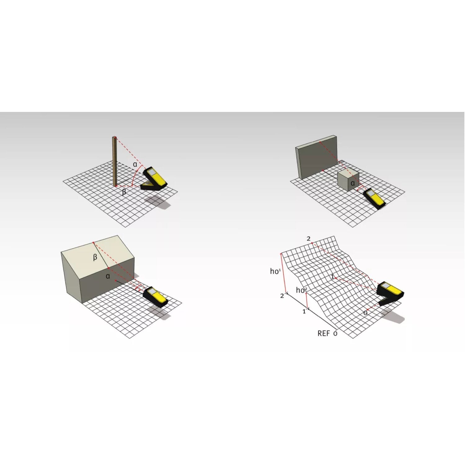 Comprehensive package of 17 functions: Area, volume, angle, indirect height and distance measurement, etc.