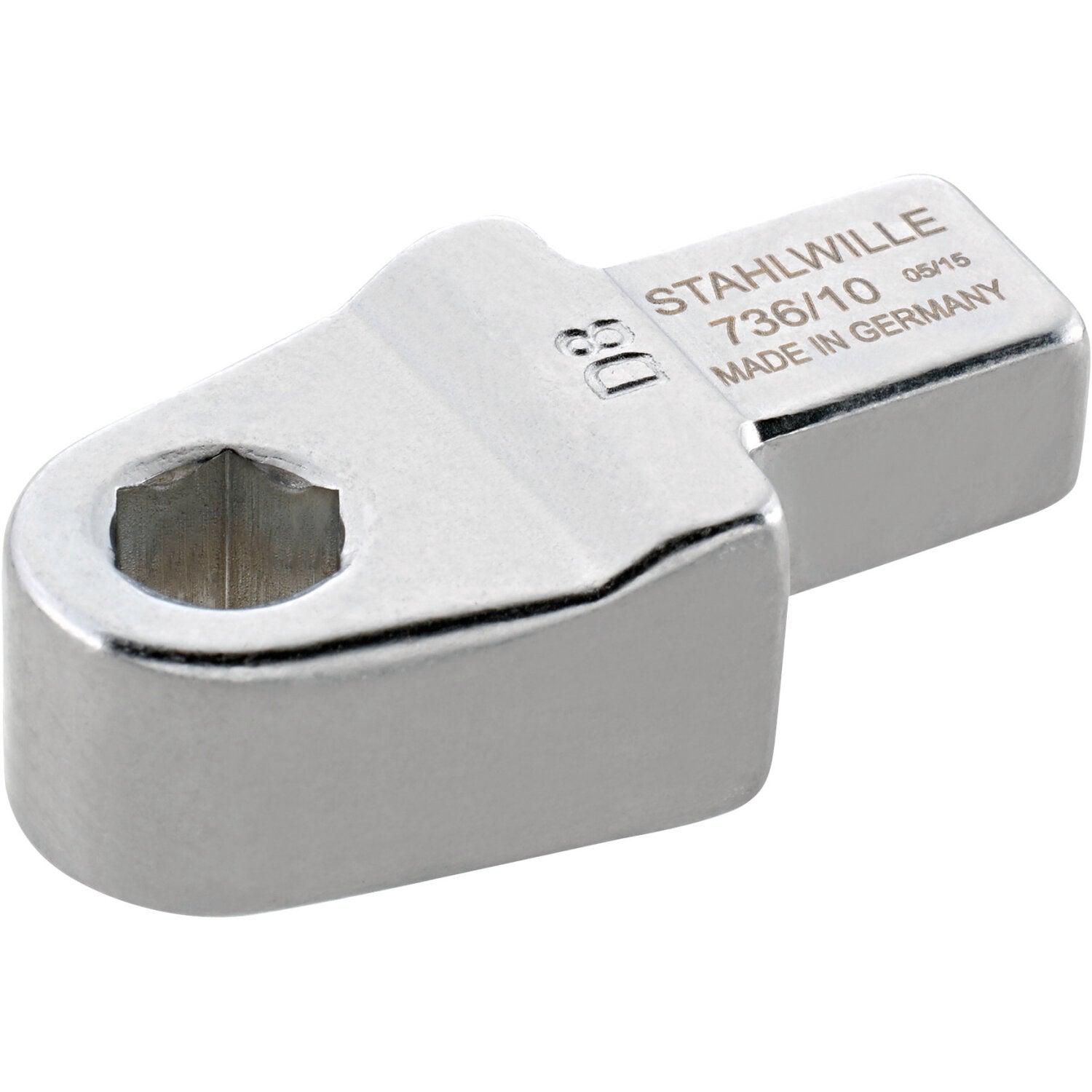 This hex insert features a collar-thrust spring and is designed for torque wrenches with an interchangeable insert system. The bits are easy to insert, lock securely into place, and can be easily pulled out again The hex socket is manufactured in accordance with DIN 3126 and ISO 1173 standards, ensuring compliance with established specifications.