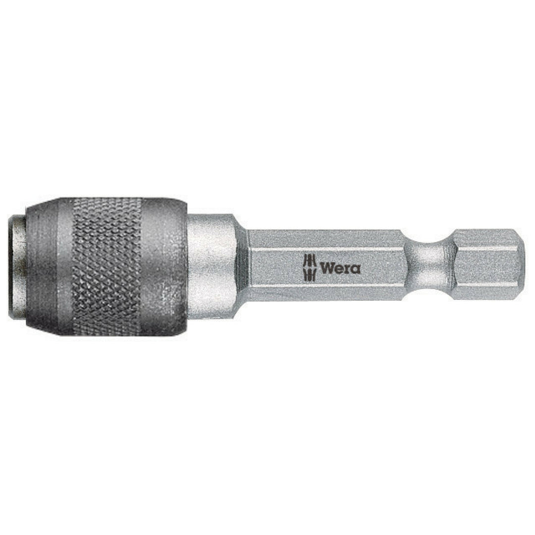 Combination holder for bits with 4 mm halfmoon drive (Wera series 9) and 4 mm HIOS drive (Wera series 21): quick-release chuck, 1/4" hexagonal drive, suitable for power screwdrivers with a take-up as per DIN ISO 1173-F 6.3.